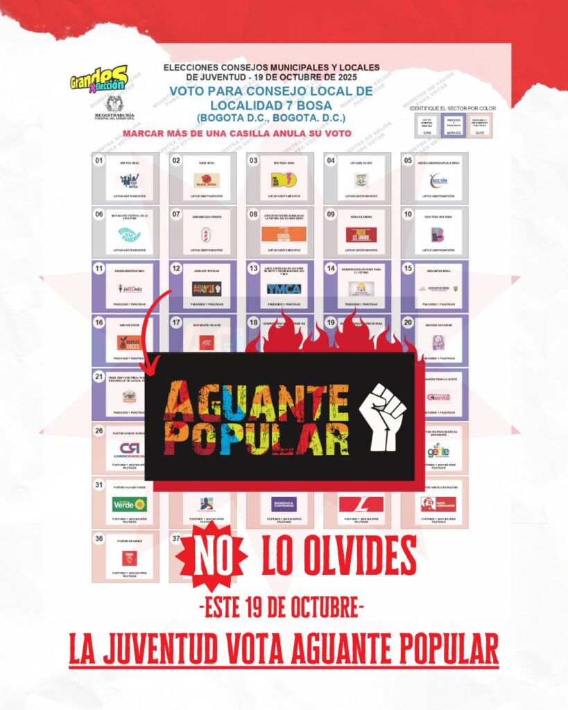 Te invitamos a votar por el Aguante Popular en Bosa, #12 en el tarjeton. 🔥🔥🔥